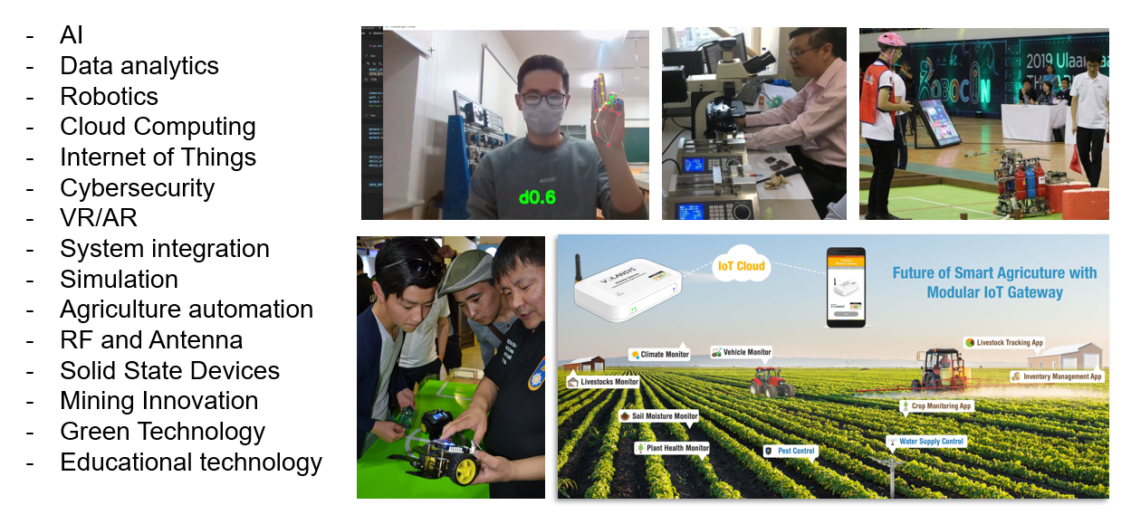 МХТС-ийн профессор багш нар болон бакалавр, магистр, доктор оюутнууд Монгол Улсын мэдээлэл, харилцаа холбооны салбарын хөгжлийн бодлоготой уялдуулан эрдэм шинжилгээ, туршилт, технологи боловсруулалт, инновац нэвтрүүлэлтийн чиглэлийн суурь судалгаа, захиалгат төсөл, гэрээт ажлуудыг гадаадын болон дотоодын бизнес, үйлчилгээний байгууллагуудтай хамтран гүйцэтгэж байна.